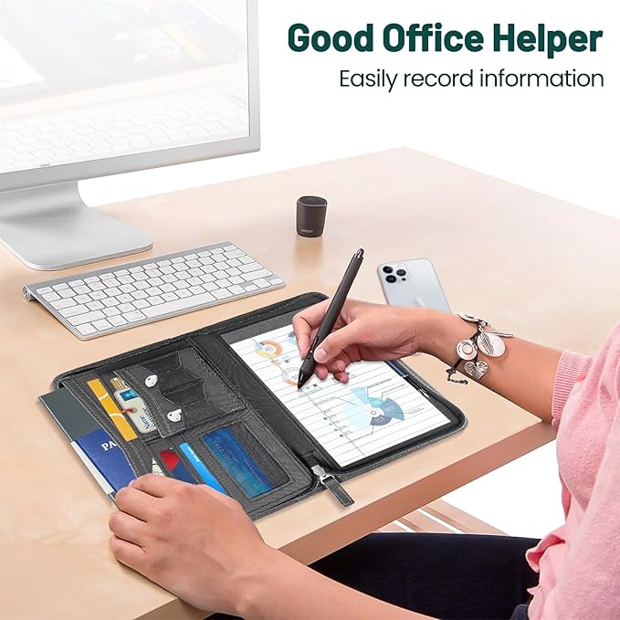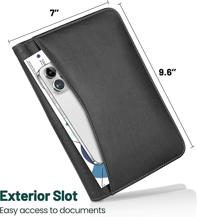 - EXTREMELY LARGE CAPACITY:With dimensions of 9.6" x 7", this versatile leather portfolio folder offers ample space for all your business essentials. Store documents, notebooks, pens, cards, legal pads, and more with ease. Stay organized and make your daily routine and business travels smoother than ever.