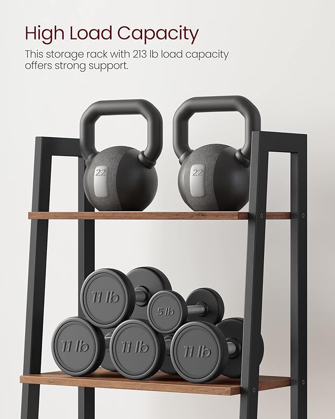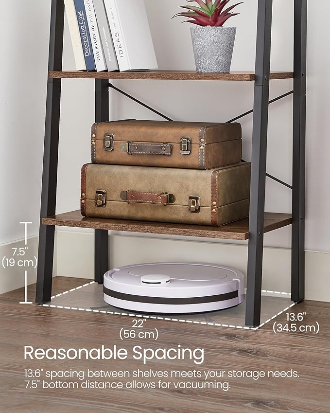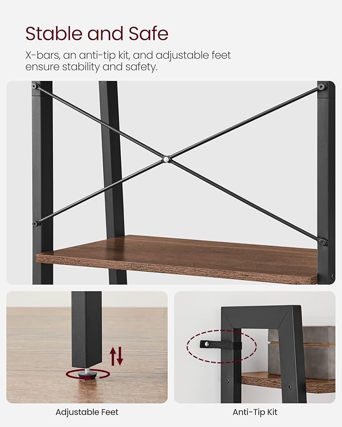 VASAGLE Ladder Shelf, 4-Tier Bookshelf, Storage Rack, Bookcase with Steel Frame, for Living Room, Home Office, Kitchen, Bedroom, Industrial Style, Hazelnut Brown and Ink Black ULLS044B03