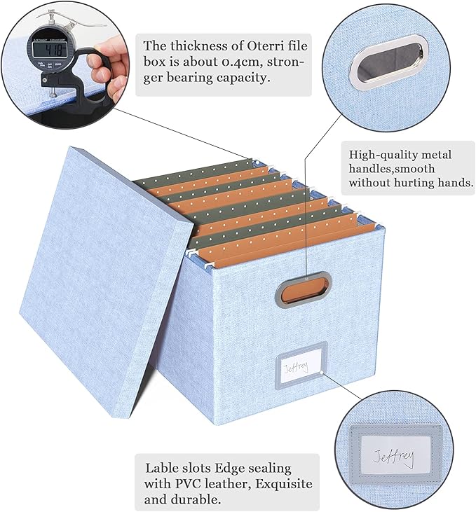 - Upgraded File Storage Box: Material and fabric upgrade and reinforcement, More durable, This file storage organizer is made of high quality MDF board, better support and bearing capacity. The lid can fit easily on the box after hanging folders.