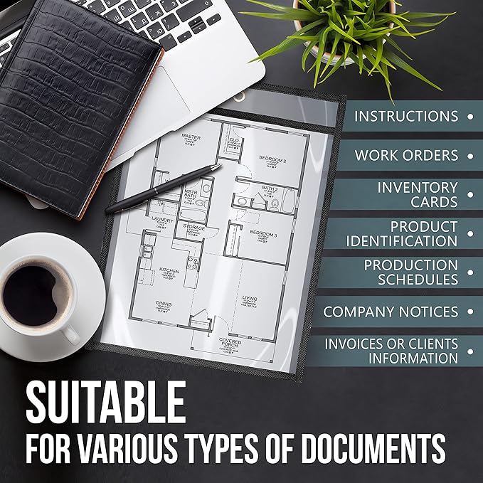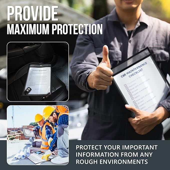 - [HEAVY-DUTY PROTECTION]: Designed for active environments, these job ticket holders 9x12 heavy duty are made from tough vinyl to shield docs from grease and dust. The work order sleeves plastic heavy duty keep important papers clean and safe.