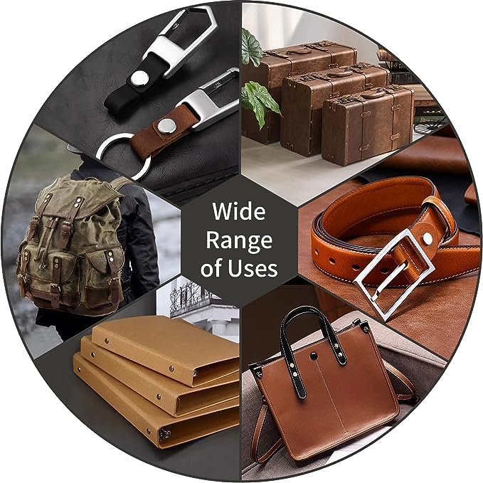 - 【Wide Application】These leather craft rivets are versatile and can be used for a variety of DIY leather crafts as either fixed or decorative items. They are ideal for belt connections, bag and clothing decorations, key bag nails, stationery ledger nails, photo album nails, calendar screws, and booking, among others.