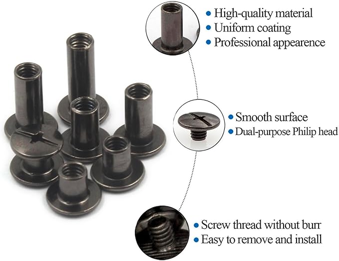 - 【Durable Material】These Chicago screws are crafted from carbon steel and boast a fine finish, ensuring that they are durable and well-constructed with no casting lines or other imperfections.