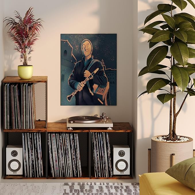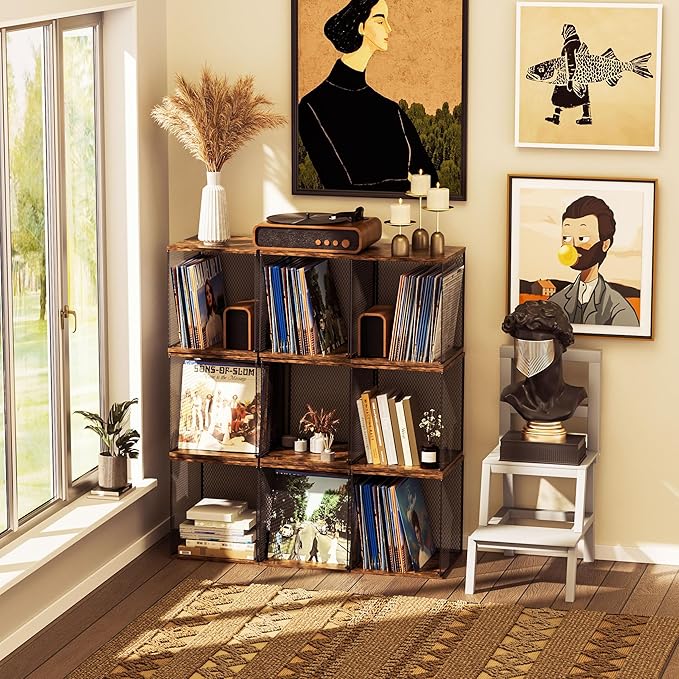 - 【Sturdy Metal & Wood structure 】This record storage furniture is made of an eco-friendly composite material with a wood grain texture, reminiscent of nature. The record storage cubes are combined with a metal frame to reduce the overall weight and facilitate mobility.