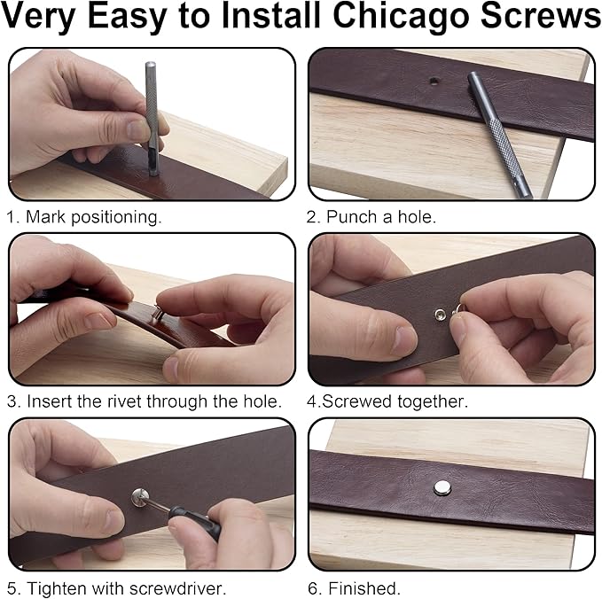 - Wide Uses: These rivets are suitable for leather crafts, as a fixed or decorative items used; For example: belt connection, bag decoration, clothing decoration, key bag nails, stationery ledger nails, photo album nails, calendar screws, booking