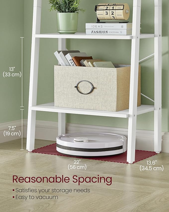 - 【STABLE】Designed in a solid frame, reinforced by X-shaped bars, balanced by adjustable feet, and secured by an anti-tip kit, this ladder shelf features great stability