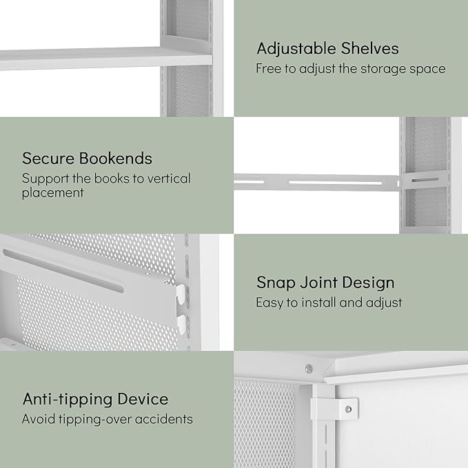 - Sturdy Metal Frame: This metal bookcase has the advantages of durability, sturdy and long lifespan compared with engineering wood. Each parts of the heavy duty bookshelf are tightly and closely connected by screws and clasps, which has extremely high stability and solidity