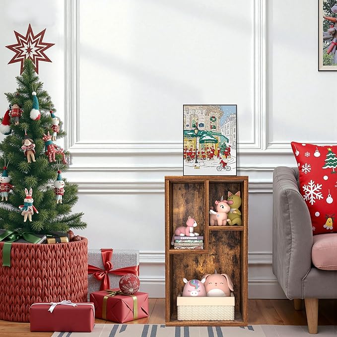 VECELO 3 Cube Small Bookcase, Fits Tallest Hardcovers, Horizontal Available, 2-Tier Modern Bookshelf, Storage Organizer for Small Spaces, Kids Room, Bedroom Living Room, Rustic Brown