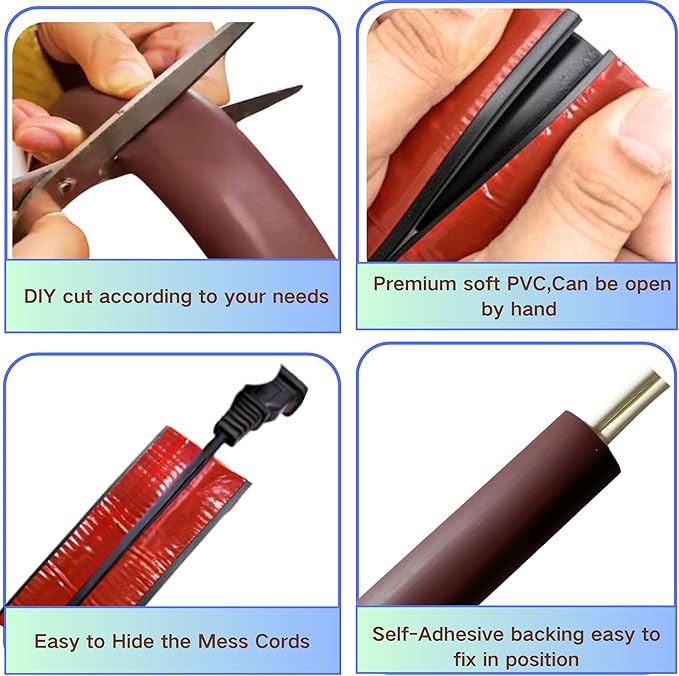 - [Flexible and Durable Floor Cord Cover System] Ultra-flexible PVC material bends effortlessly around corners (no heat required!) and lies flat instantly for quick installation. Scuff-resistant textured surface withstands daily wear while allowing easy wipe-down cleaning. DIY tailoring: Cut with household scissors to fit doorways, desks, or irregular layouts.
