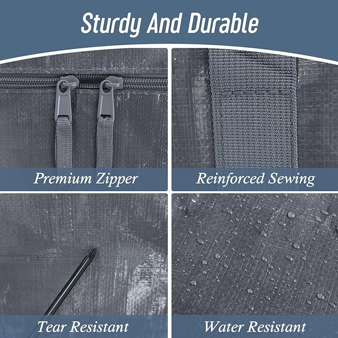 12 Pack Extra Heavy Duty Large Moving Bags with Strong Zipper & Comfortable Handles, Sturdy & Durable Clothes Storage Bags Totes Bins, Packing Moving Boxes for College Supplies, Gray