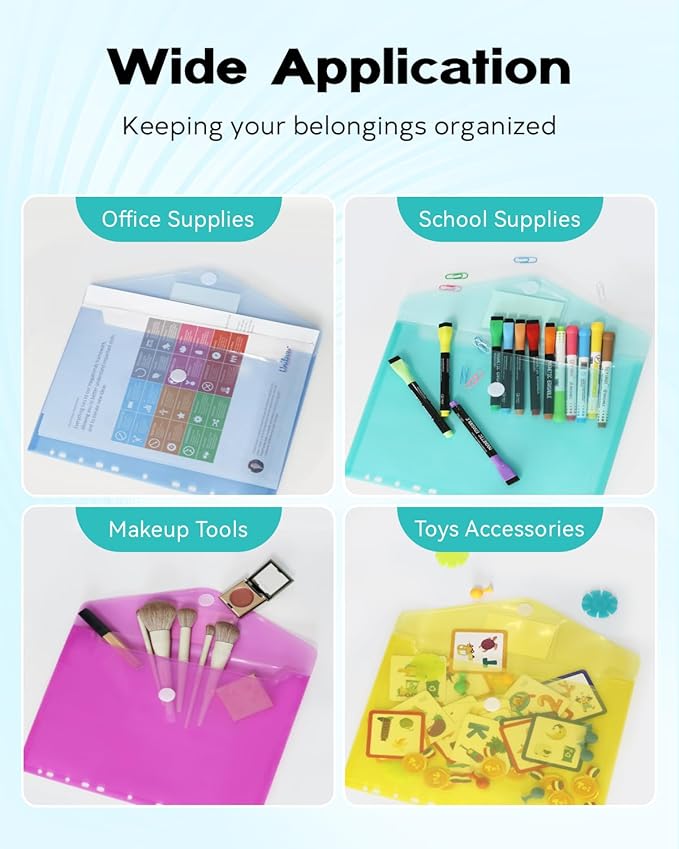 - 【Packlist】Folders for documents available in 5 clear colors (purple, blue, pink, green, yellow), 2 of each color for a total of 10