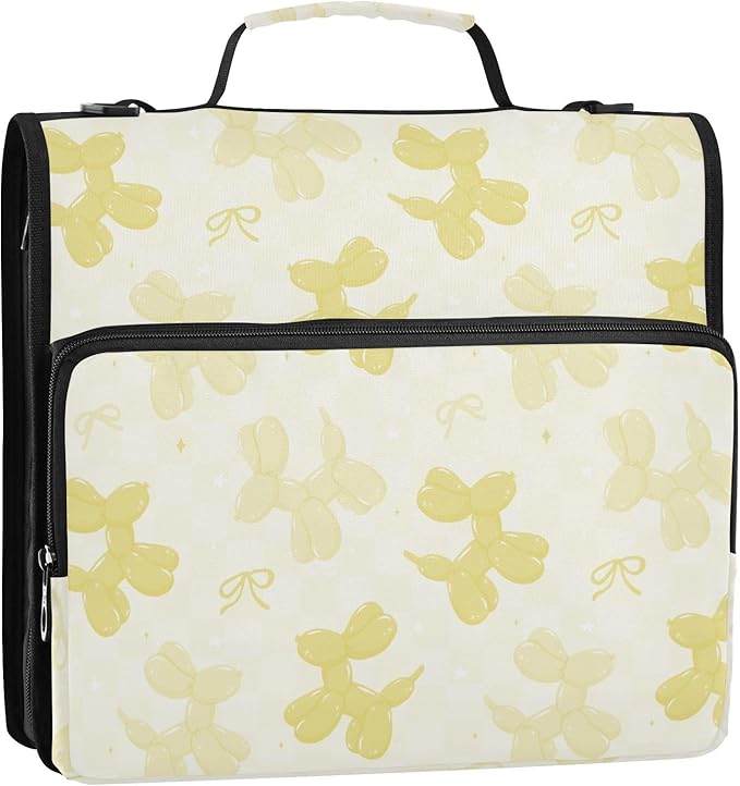 Yellow Balloon Dogs Bow Zipper Binder with Shoulder Strap Bag 3 Ring Binder Organizer Large Capacity Multiple Compartments for School Office