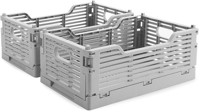 2-Pack Foldable Crates, Plastic Storage Baskets Crate for Organizing, Collapsible Storage Crates for Home Kitchen Classroom Office Bedroom Bathroom (8.66''x5.91''x3.54'', Gray)