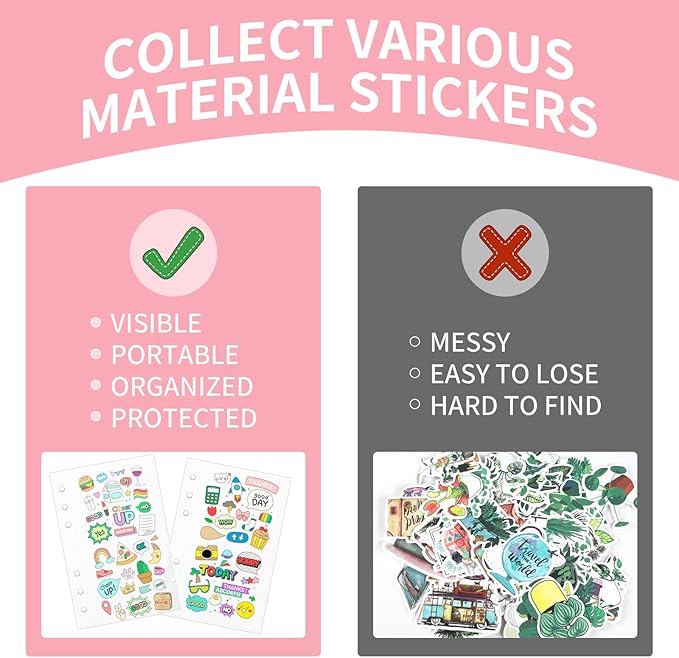 - Great Sticker Collection Storage: With sticker refill binder pouch, no more messy stickers. All can be sorted and collected into the sticker collecting binder album no matter cash, stickers, cards, bills, invoices or others