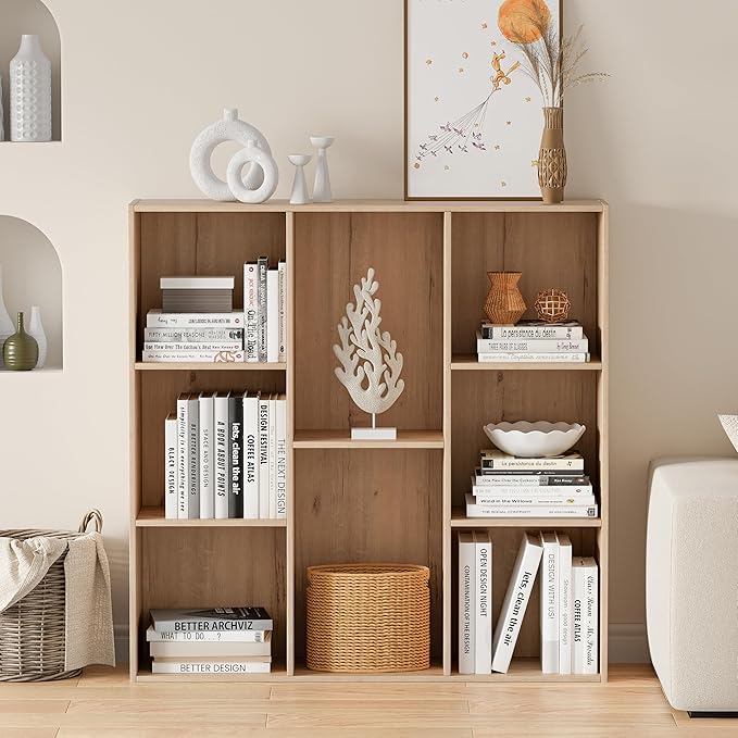 Wooden Cube Storage Organizer with Closed Back Panel, 11in Cube Shelf Opening, Bookshelf, Display Shelf,Closet Cabinet for Home and Office (White Oak, 8-Cube 35.98L*9.45W*35.91H)