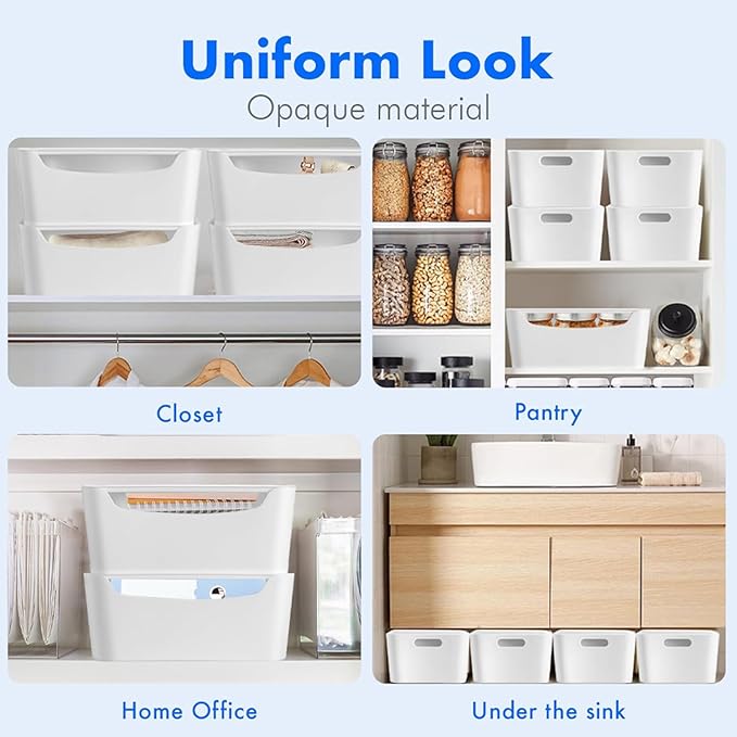 - ⌛【 VERSATILE HOME STORAGE SOLUTION】 - Enjoy a clutter-free, efficient, and stress-free living space. It’s perfect for any room in the house as bathroom storage containers, craft room organization bin, garage storage bins, bedroom storage, kitchen containers and more. These white storage baskets are ideal for spring cleaning organization and storage