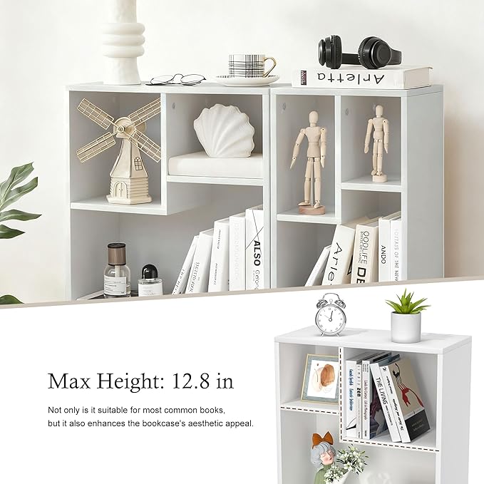 - 🎃【Small Changes,Big Difference】: With Height Difference Shelves, This Bookcase, Unlike Those with Fixed Height, Matches Books that Height Up to 12.8 Inch,Suit for Most Books.