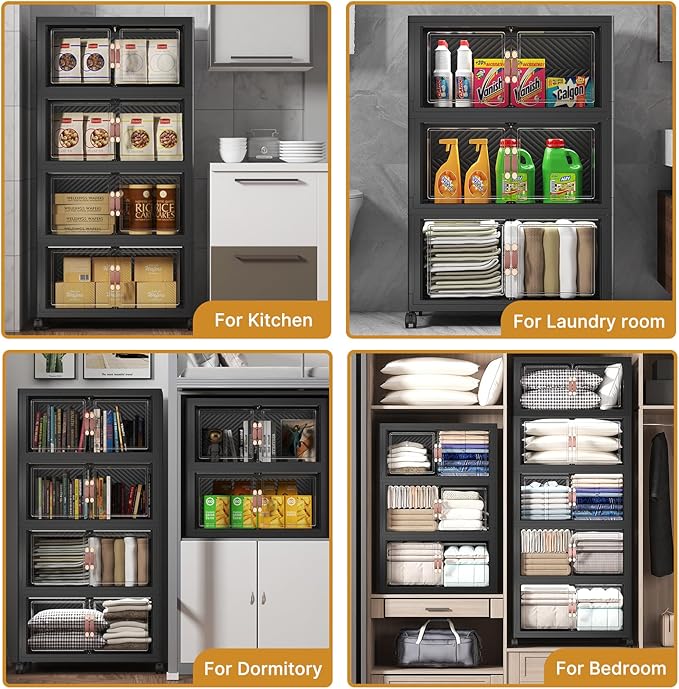- 4. FRONT DOOR & TOP LID FOR EASY ACCESS: Front door for instant item retrieval; top lid for full coverage. No lifting or unstacking required. Note: these closet organizers come with 1 LID.