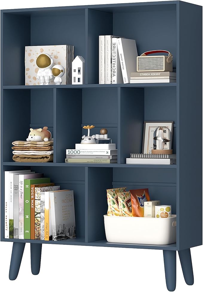 - 【 Excellent Display Comes From Right Size 】 The simple upright and open design of the book shelves can help you to save much more space in your house. This artistic blue wood bookshelf can be used as a storage shelf organizer and display shelf rack. Fill this creative display cabinet with your favorites! Choose a best display organizer for your books, CDs, magazines, collections! Bookcases size: 31.5"L x 9.45" W x 43.31" H