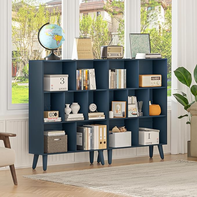 - 【 Your Art Treasure-Creative Bookshelf 】 The blue cube bookshelf is designed with elegant and mysterious blue and crisscross partitions, and its unique appearance allows you to enjoy both retro and modern style.18 screws exposed design! Mid-century , modern, it's all here! Reshape your storage space with YAHARBO’s charming rustic blue modern cube bookshelves, making your home/office/school more elegant and stylish.