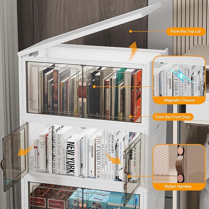 - 4. FRONT DOOR & TOP LID FOR EASY ACCESS: Front door for instant item retrieval; top lid for full coverage. No lifting or unstacking required. Note: these closet organizers come with 1 LID.